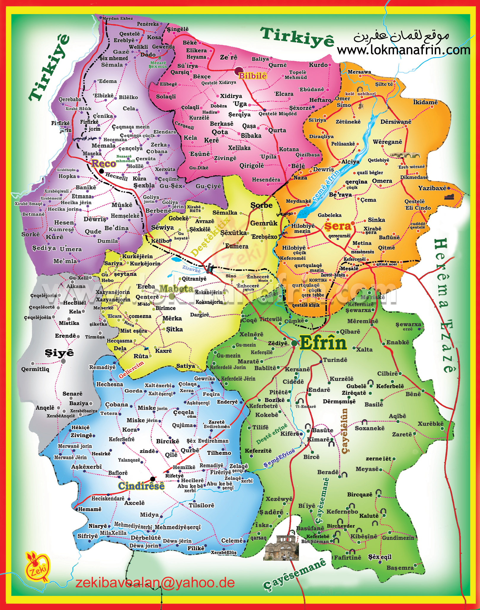 التقسيمات الشعبية والخريطة لجبل الكرد ( عفرين ) ...... باللغة الكردية