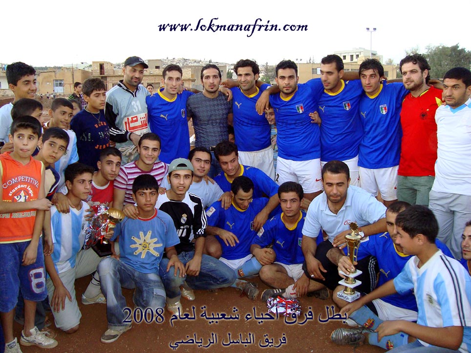 المباراة النهائية لفرق أحياء شعبية لعام 2008/2009 شهدت يوم الجمعة المباراة النهائية بين فريقي الباسل وكوركان على أرض ملعب عفرين , الموافق ليوم الجمعة 19/9/2008 وبعد فوز فريق الباسل العفريني ( 3 - 2 ) تم تتويجه رسمياً من قبل نادي عفرين الرياضي بالتعاون مع رابطة الشبيبة في عفرين. ي أسماء لاعبي فريق الباسل علاء البكري - زلفـو زلفو - ابراهيم حركوك - عبدو كنجو - كاوا يوسف - خالد كلاحو - عبدو أحمد أنس أوزون - همام حركوك - كمال أحمد - هوزان كالو - مصطفى مصطفى - مصطفى بكري ميرفان مدو - قهرمان أحمد - عبد الرحمن كنجو - أمير بياز تحت إشراف المدرب : مروان حسن