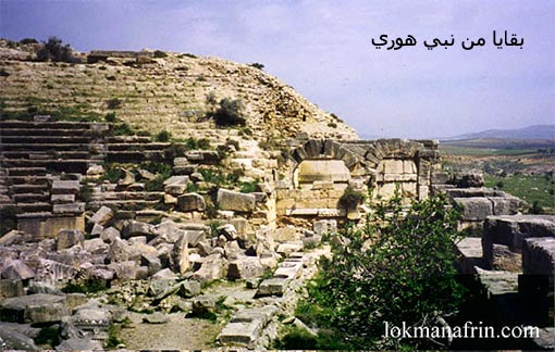 تقع أطلال مدينة "نبي هوري" في أقصى الزاوية الشمالية الشرقية من منطقة عفرين. على مسافة 45كم، وبينها وبين بلدة بلبل نحو 10كم. وتبعد 2كم عن حدود تركيا في الشمال. يمر نهر صابون بجوار منحدرها الشرقي منها بنحو 1.5كم. يرفده نبع غرمكه غزير المياه، بعد عشرات الأمتار من تفجره. أما أطلال مدينة نبي هوري القديمة، فتقع على السفحين الشمالي والشرقي لمرتفع جبلي أقيمت عليه قلعة نبي هوري. ويتحدد الموقع من الجنوب بهضاب قليلة الارتفاع مغطاة بأشجار الزيتون. ومن الشمال: تتراءى الطبيعة الجميلة للقرى السورية الواقعة خلف حدود تركيا. ومن الشرق نهر صابون ومن الغرب مرتفعات.تعتبر منطقة نبي هوري من أماكن الاصطياف الجميلة في محافظة حلب، يرتادها مئات المصطافين أسبوعيا، كما تزورها المجموعات السياحية الأجنبية للتعرف على مدينة سيروس وآثارها الرائعة. أما قلعتها، فلم يبق منها سوى أجزاء من سورها الكبير المضلع ذو الأبعاد 150×200م تقريبا، وبعض أساسات وغرف الأبراج في زوايا سور القلعة، وهي من النموذج المقنطر. يقابل موقع القلعة من الغرب قمة جبلية أخرى، عليها أطلال آثار لحصن تابع للقلعة الأم، ويقال إنه كان يصل بينهما نفق. ولهذا الموقع الأثرى عدة تسميات. فهو يعرف حاليا بـ "نبي هوري"، وقلعة هوري، أو قلعة نبي هوري. أما الاسم اليوناني للمدينة فهو "سيروس"، كما سميت "آجيا بولس " أي مدينة القديسَين كوزما ودميانوس، وبنيت كنيسة حول قبريهما. فقد دخلت سيروس المسيحية على يد "سمعان الغيور" الذي بنى فيها كنيسة، ومات ودفن فيها. أما المؤرخون العرب والمسلمون فقد كتبوا اسمها على شكل " قورش" وأحيانا "كورش" نظرا لاختلاف نطق الحرف اللاتيني "C" في الكتابة واللفظ العربيين. ولجميع هذه الأسماء صلة بتاريخ استيطان هذا الموقع وبناء المدينة، والأحداث التي وقعت حولها. فللاسم "هوري" رواية دينية تقول: بأنه يعود إلى اسم " أوريا بن حنان" أحد قادة النبي داوود قتل في معركة جرت أحداثها في الألف الأول ق.م ودفن فيها، وأحداث قصة النبي داوود مع زوجة أوريا معروفة في الأدب الديني، /الدر المنتخب، ص 225/. فمن المعروف أن مناطق حلب خضعت لداوود لبعض الوقت في بداية الألف الأولى قبل الميلاد … إلى أن انتهى على يد البابليين في سياق التحالف البابلي الميدي وسقوط نينوى. كما أن "هوري" اسم شعب جبلي قديم سكن جبال زاغروس وطوروس، وله تاريخ معروف في الشرق الأدنى، يغطي نصف الألف الثالثة، وكل الألف الثانية ق.م. وأسسوا الإمبراطورية الميتاهورية الكبيرة في أواسط الألف الثانية ق.م الميلاد، التي حكمت كامل القسم الشمالي من الشرق الأدنى القديم. ولاتزال في منطقة عفرين مواقع أخرى تحمل اسم هوري، مثل: كهوف وخرائب الهوريين قرب قرية جويق، وجبل "هاوار" القريب من اسم هوري. أما حول الاسم سيروس فتقول بعض المصادر انه اللفظ اليوناني لاسم الملك الفارسي "كورش" وربما يعود وجود المدينة إلى أيامه. أما المعجم الجغرافي السوري، فيقول أنه من اسم مدينة سيرهوس في مكدونيا. وهناك رأي هام يقول: بأن هوري هو شكل محور من اسم الإله الزردشتي "أهورامزدا"، و"نبي" هو من الإله الرافدي "نبو"، فيكون الاسم كاملاً هو "الإله أهورامزدا". وعن تاريخ بناء المدينة تقول المصادر: انه في الفترة السابقة لليونانيةن كانت هناك مدينة في نفس المكان، وأغلب الاعتقاد أنها كانت موجودة منذ الفترة الهورية. وعلى هذا يكون لاسمها الحالي جذور موغلة في التاريخ الهوري. أما المدينة الحديثة "سيروس" التي نرى أطلالها اليوم، فقد بناها القائد اليوناني "سلوقس نيكاتور" مؤسس الدولة اليونانية السلوقية في الشرق. |