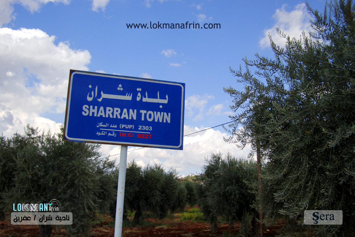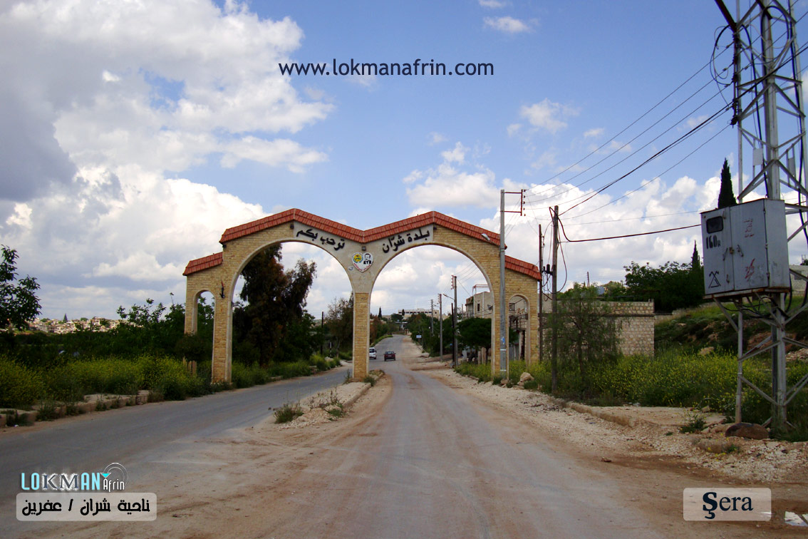 تقع بلدة شران على السفح الغربي لهضبة كلسية. تبعد عن مدينة عفرين 13 كم باتجاه الشمال الشرقي. إعمار المنطقة قديم بدلالة وجود حجارة كلسية مشذبة ضخمة ومقابر وآبار منقورة في الصخر تعود إلى العهد الروماني . تجاورها ق.خربة شران في الجنوب، وهي القرية الأساسية القديمة، وتفصلهما وادي عنْتوز 'Entûz القادم من الشرق. يعمل السكان بالزراعة كمورد رئيسي؛ وتحيط بها حقول الزيتون وبساتين