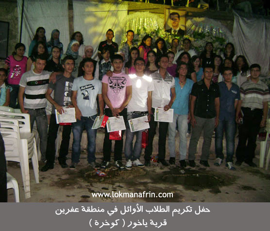 و الثانوي والأوائل في منطقة عفرين في قرية ياخور يوم الخميس 26/8/2010